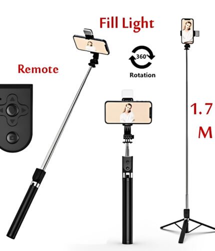 BD-17 Wireless 5.5 Feet Selfie Stick Tripod with Bluetooth Remote – Foldable and Extendable Monopod for Smartphones