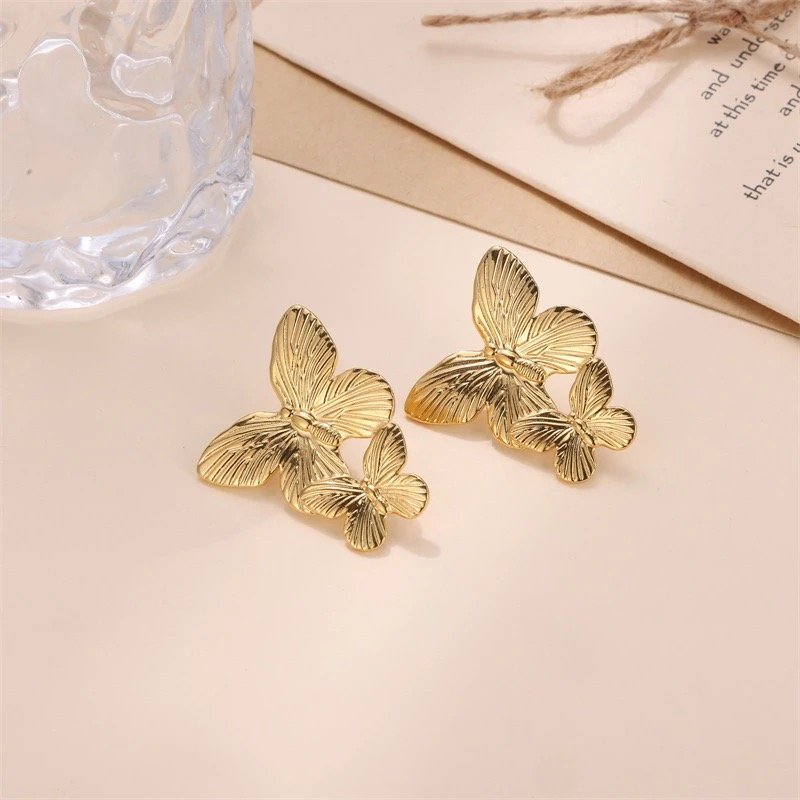 - 1 Pair Gold Butterfly Earrings Elegant Everyday Wear Chic European-and-American Style Earrings