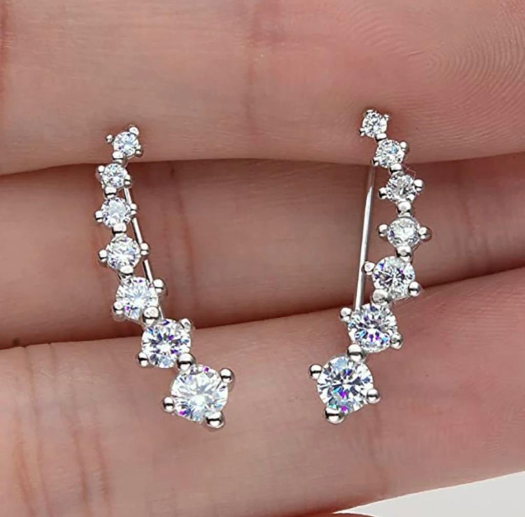 - 7 Crystals Ear Cuffs Vines Climbers Wrap Pierced Pins Hook EarringsĀ