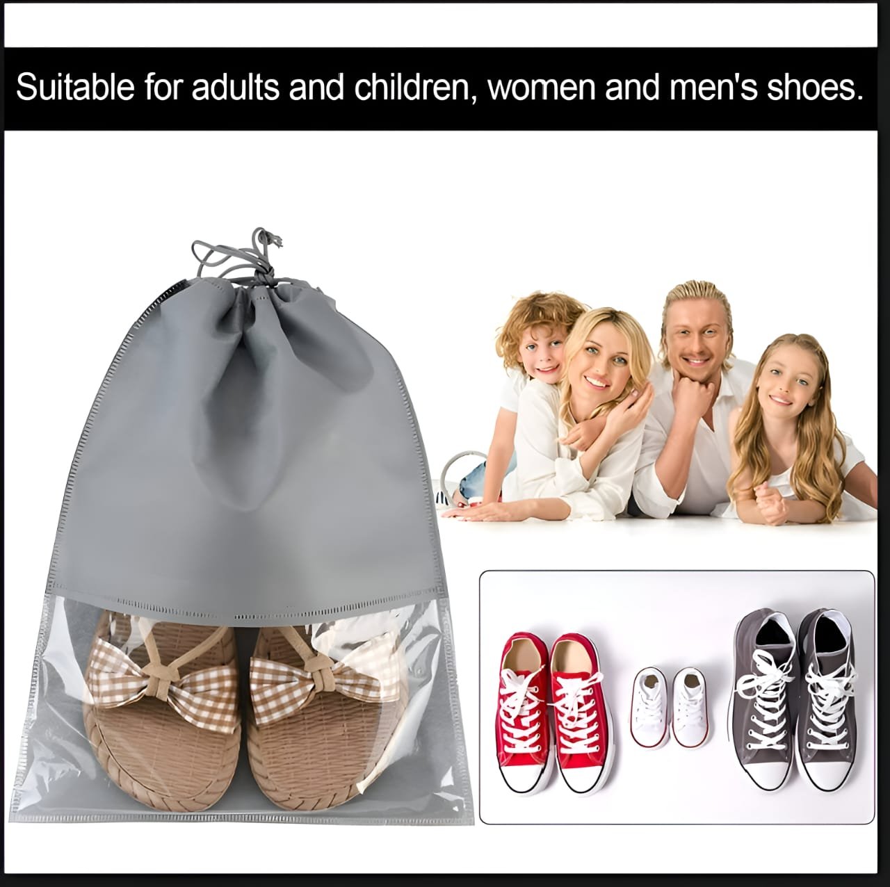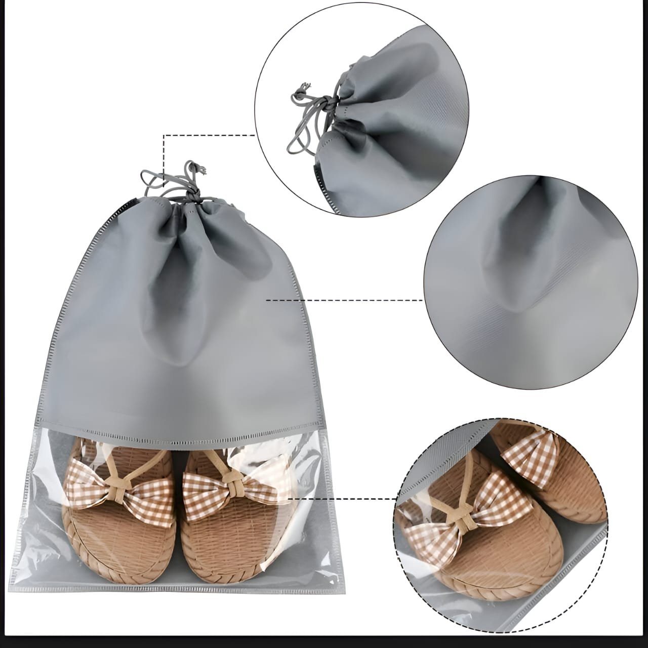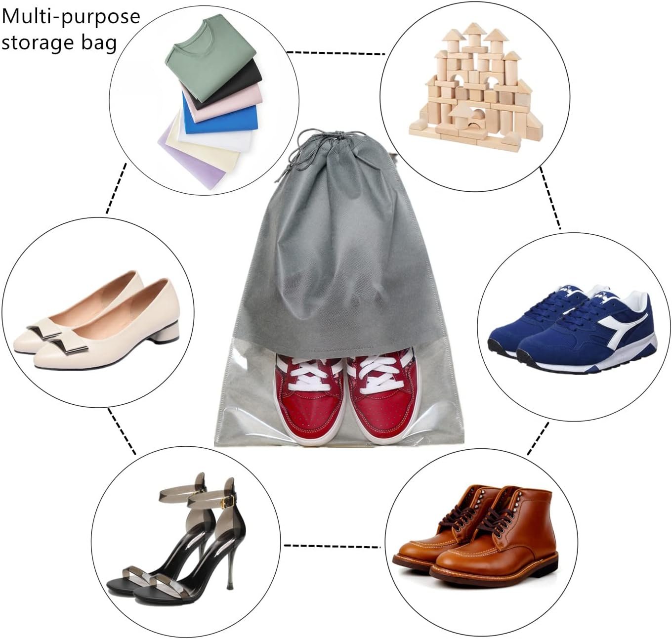 - Shoe bag with drawstring: Designed with the drawstring on the opening mouth, the pockets can hold your essentials and protect them from falling out easily. Closes easily and protects your shoes dust-free when travelling, in the gym or in the wardrobe.