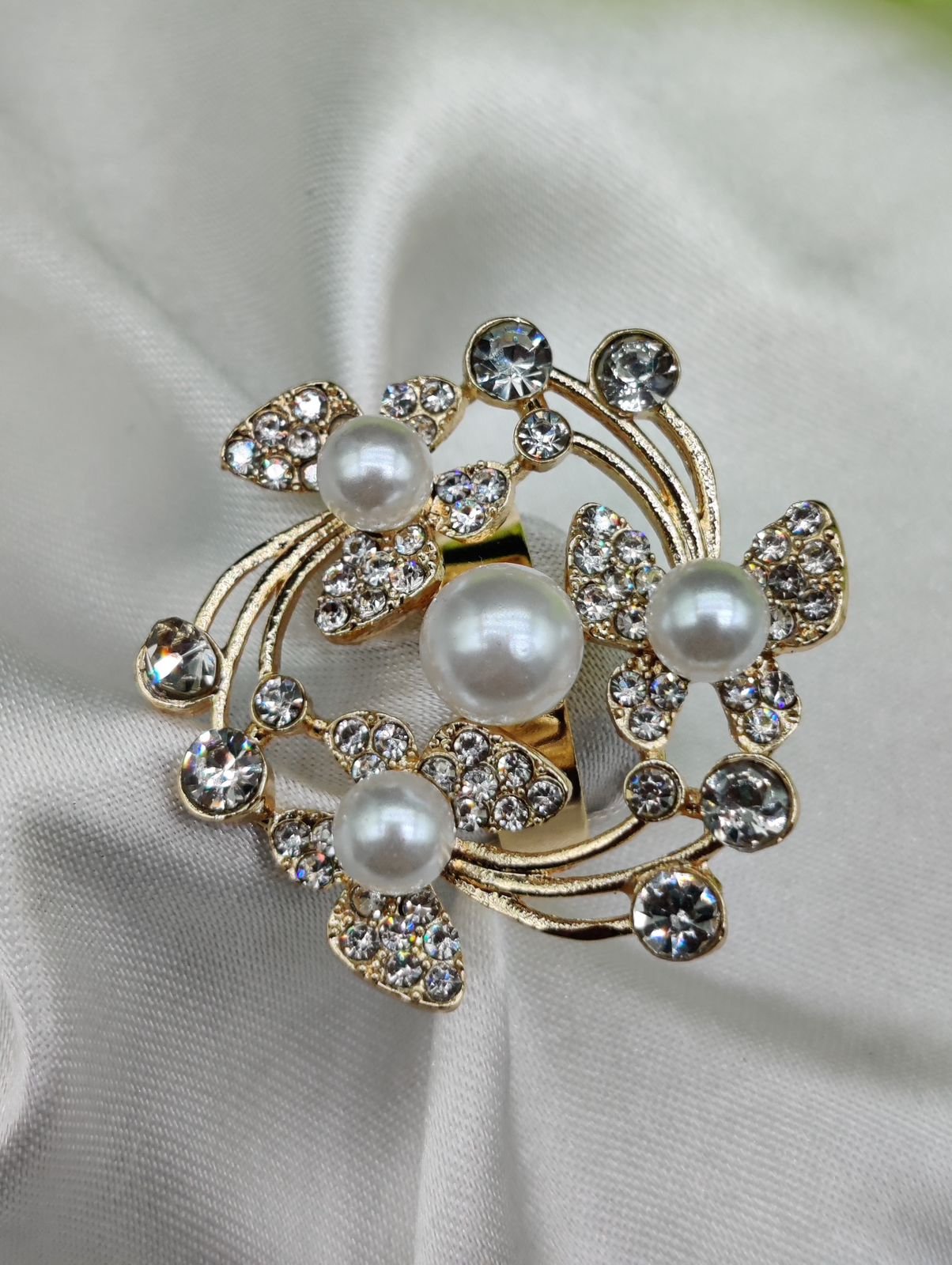 1 Piece Imported Exquisite Floral Pearl Ring – A Symphony of Elegance and Sparkle 🌟 | Luxurious Design Ring | Adjustable Ring | Ring For Girls & Women ✨