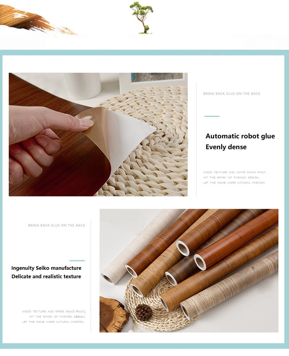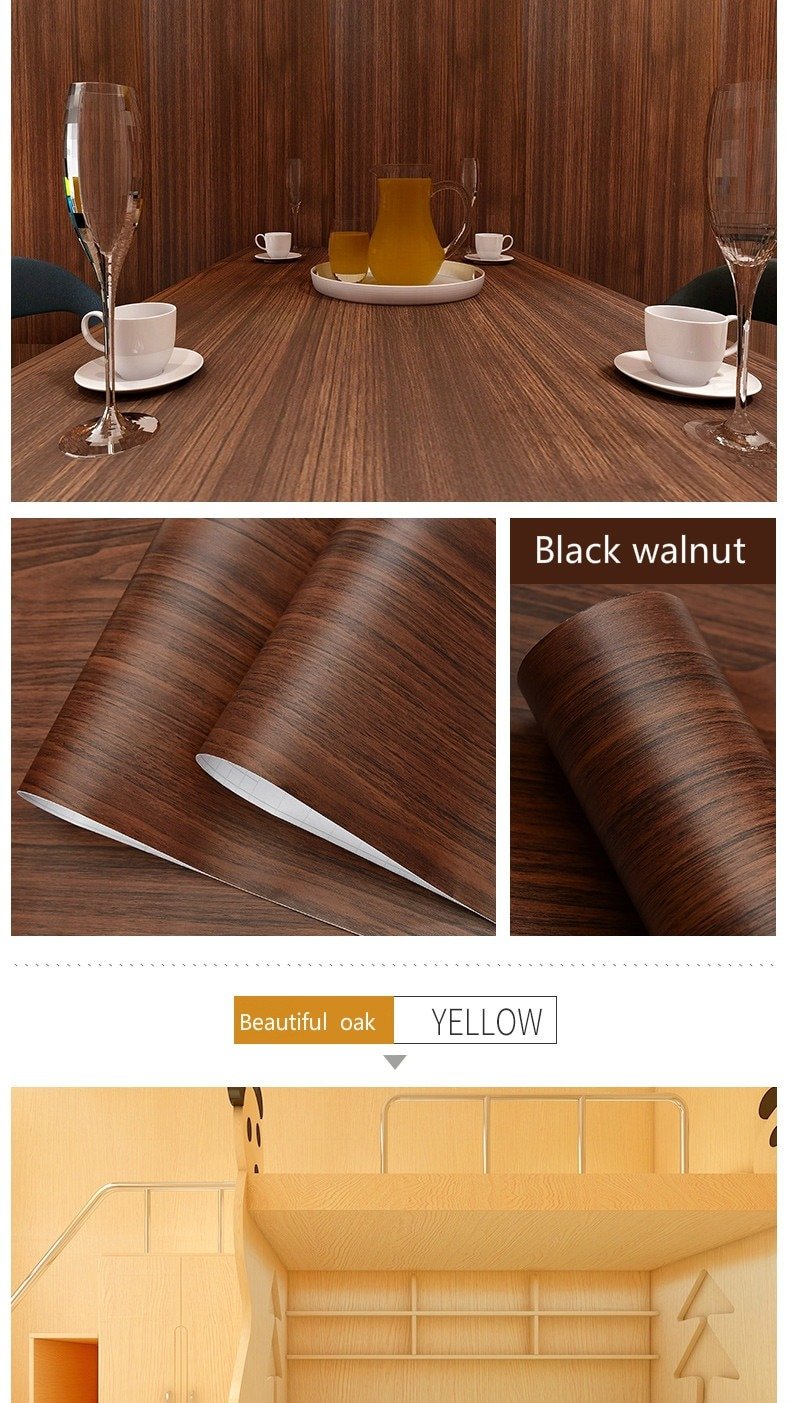 1M Waterproof Wood Vinyl Wallpaper Roll Self Adhesive Contact Paper Doors Cabinet Decorative Sticker