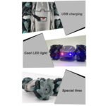MULTI-ROLLER TIRES AND DURABLE DESIGN: Double side can be driven, will even drive when it’s upside down, go 45° sideways drift, 180° flip and 360° rotate.