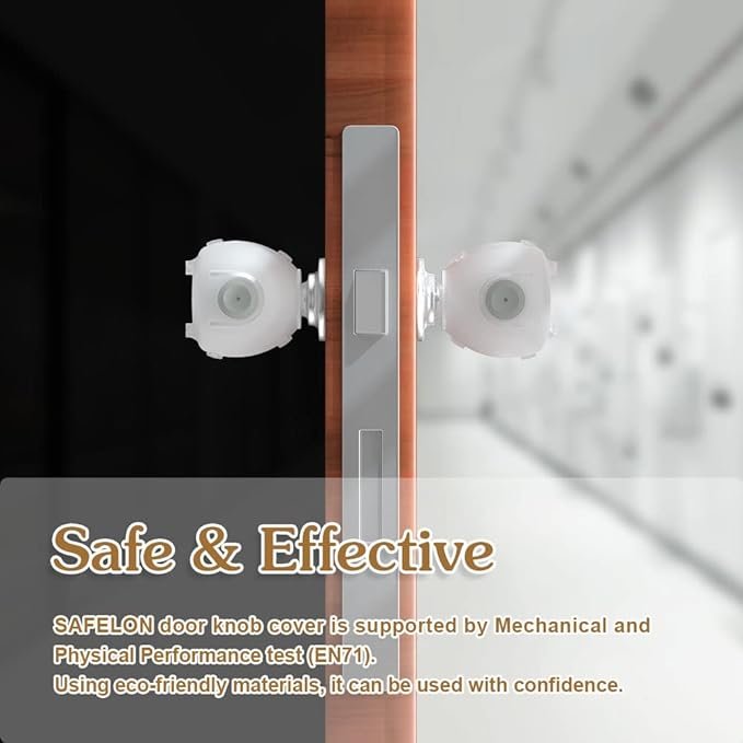 - Safe & Effective—SAFELON door knob cover is supported by Mechanical and Physical Performance test (EN71). Using eco-friendly materials, it can be used with confidence.