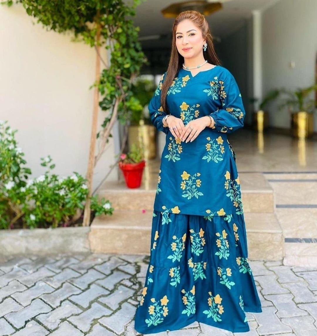 Flower Shrara print 2pc Dress