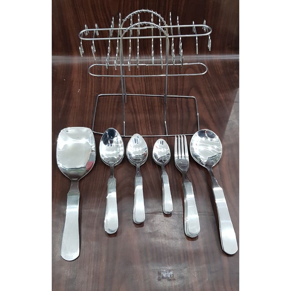 What’s in the box: 6 x Forks, 6 x Tablespoons, 6 x Baby Spoons, 6 x Teaspoons, 2 x Serving, 2 x Rice Spoons, 1 x Elegant Stand