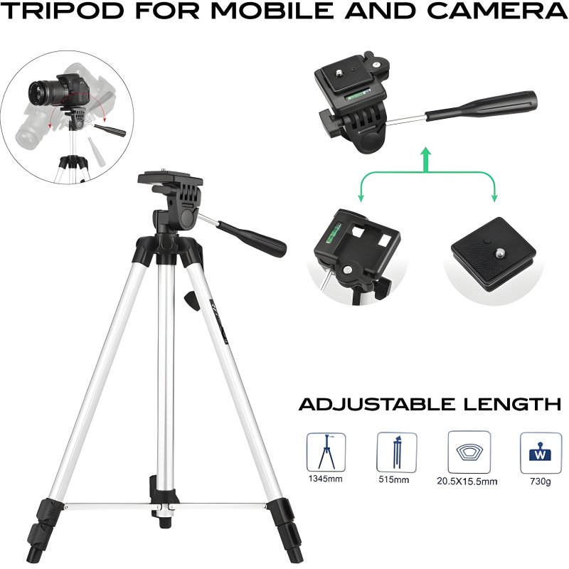 330A Multi-Functional Professional Lightweight Portable Tripod Stand, the ultimate companion for your mobile phones and cameras. Crafted from premium aluminum alloy material, this tripod boasts exceptional durability and sturdiness while remaining remarkably lightweight and portable.