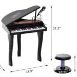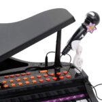 Microphone and stool included: this piano set comes complete with a detachable, sing-along microphone and matching round stool, Kids can sing on the microphone while playing the children’s piano keyboard