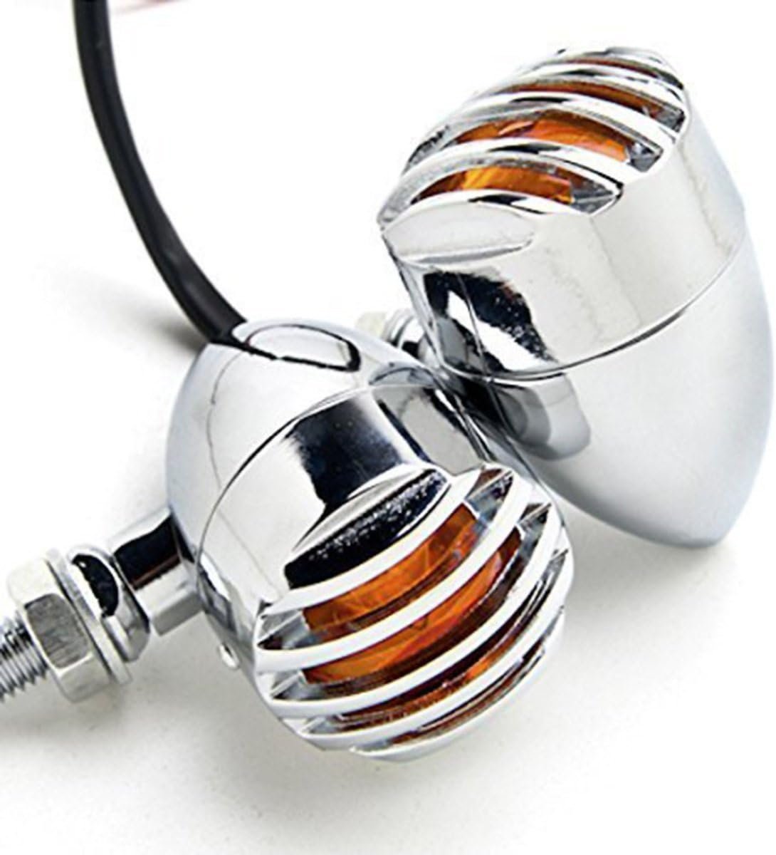Home » Shop » 4 pcs 12V Universal Motorcycle Grill Turn Signal Lights – Amber LED, Chrome Body, Compatible with Honda, Yamaha, Kawasaki, Sportster 1200, and More.