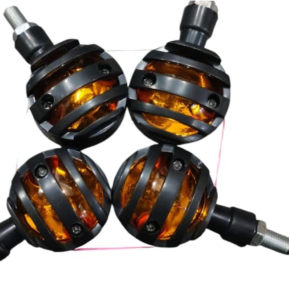- 4 pcs 12V Universal Motorcycle Grill Turn Signal Lights – Amber LED, Chrome Body, Compatible with Honda, Yamaha, Kawasaki, Sportster 1200, and More.