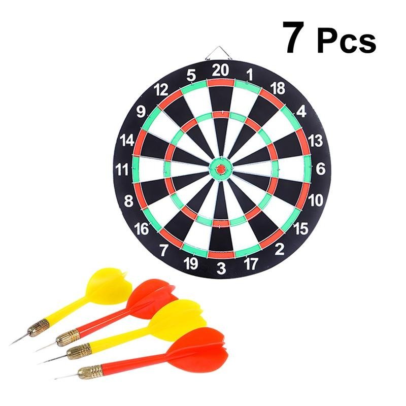 Double-faced board allows you to enjoy traditional dart games and target bullseye dart games.