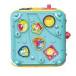 -The multi-functional toy includes a shape sorter, rotatable gears, a hand-on drum with sounds and lights, birds catch worms game, piano, and melody mode. Cute and colorful activity cube toys will attract babies’ attention and stimulate their imagination.