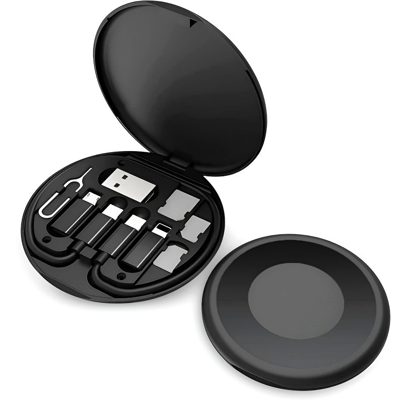 Stay connected and organized wherever you go with the 60W Multifunctional Data Cable Set – the ultimate all-in-one digital organizer designed for travel, work, and daily life. This compact and portable storage box packs everything you need, including a 60W fast charging cable, Lightning, Type-C, Micro USB, and USB adapters for universal compatibility, as well as SIM card storage with an ejector pin to keep your essentials secure.