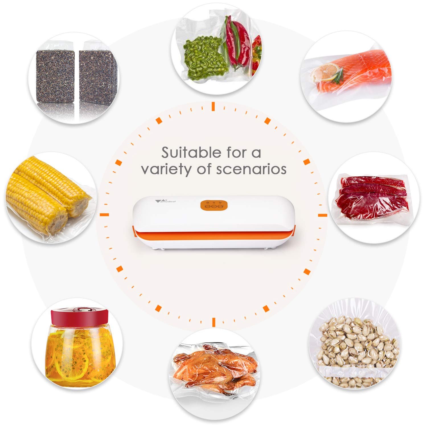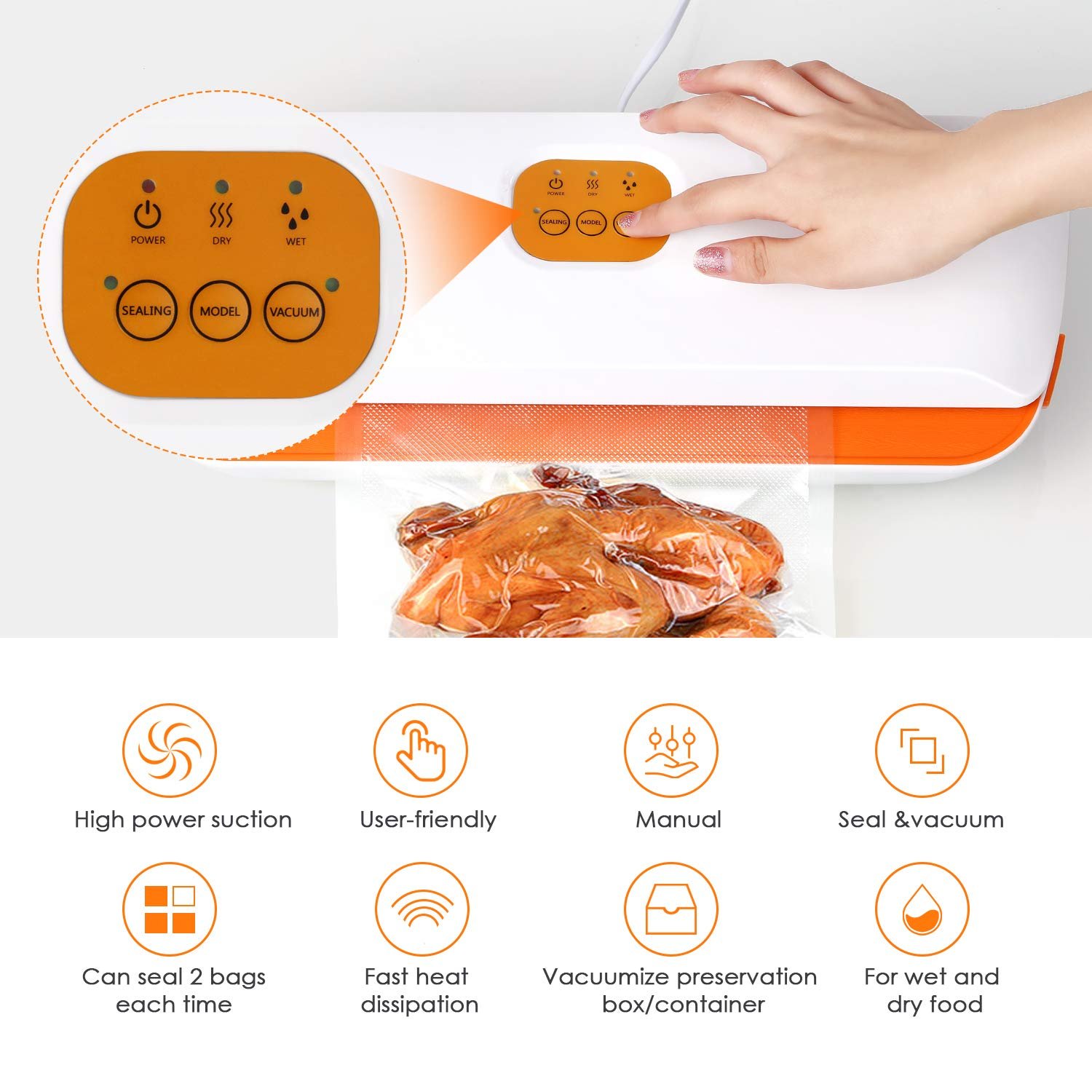 4. The Amzdeal vacuum sealing system features a fully automatic vacuum sealing function, digital buttons, LED indicators, power plug and top control panel for an easy to use experience. Quick cooling, to keep efficient, sealed and the intake air for short