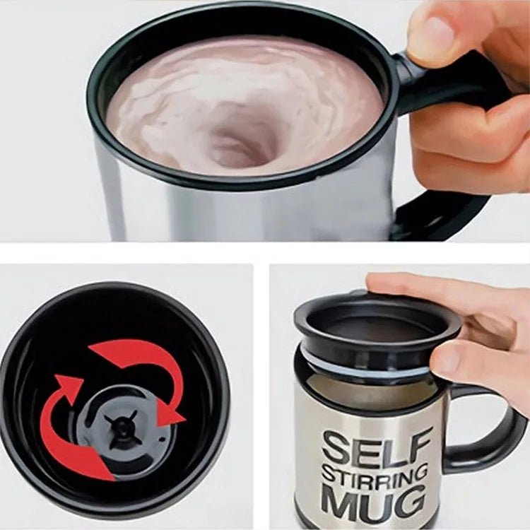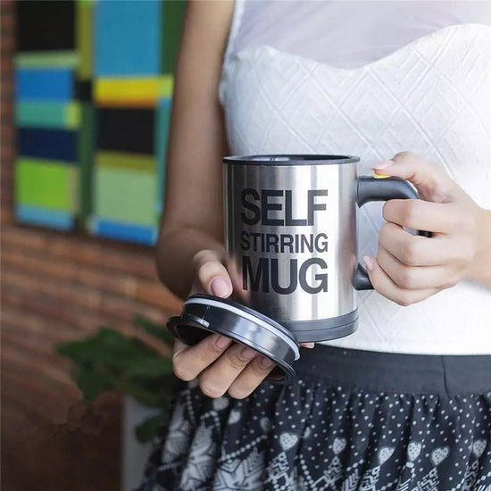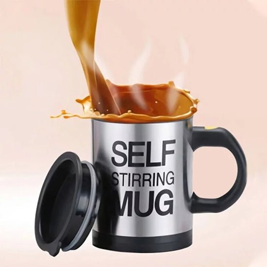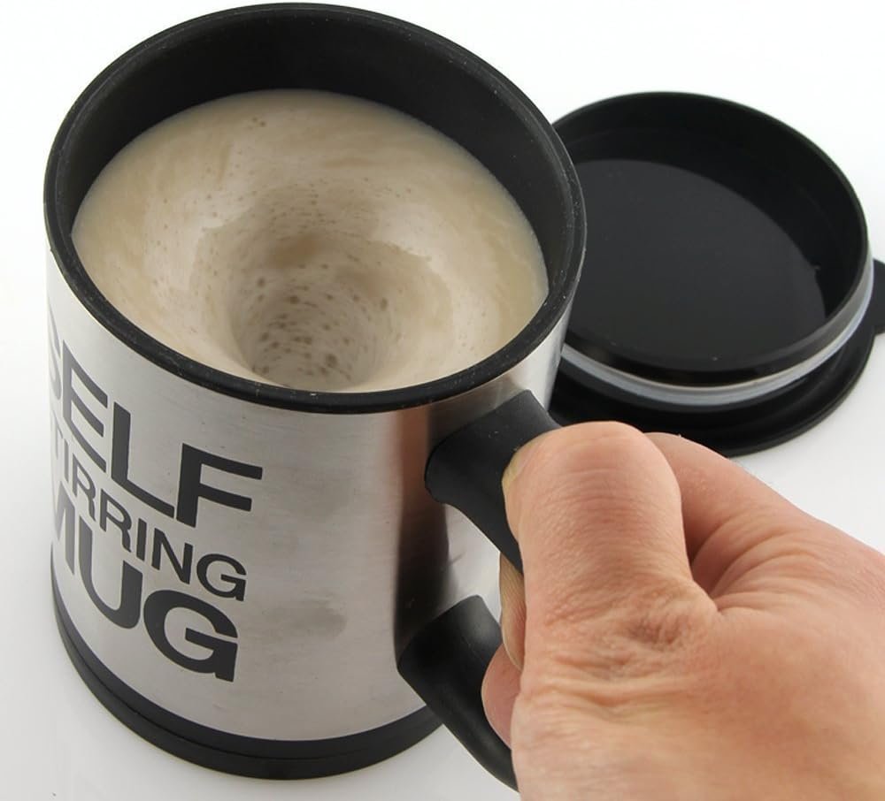 - Self-Stirring Mug Has A Stainless Steel Finish With A Snap-Lock Lid To Keep Your Drink Hot.