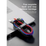 The durable braided nylon jacket and reinforced connectors provide long-lasting use and excellent resistance to wear and tangling. The color-coded design—red for iPhone, blue for Type-C, black for iPhone, and green for Micro—makes it easy to identify the right connector.