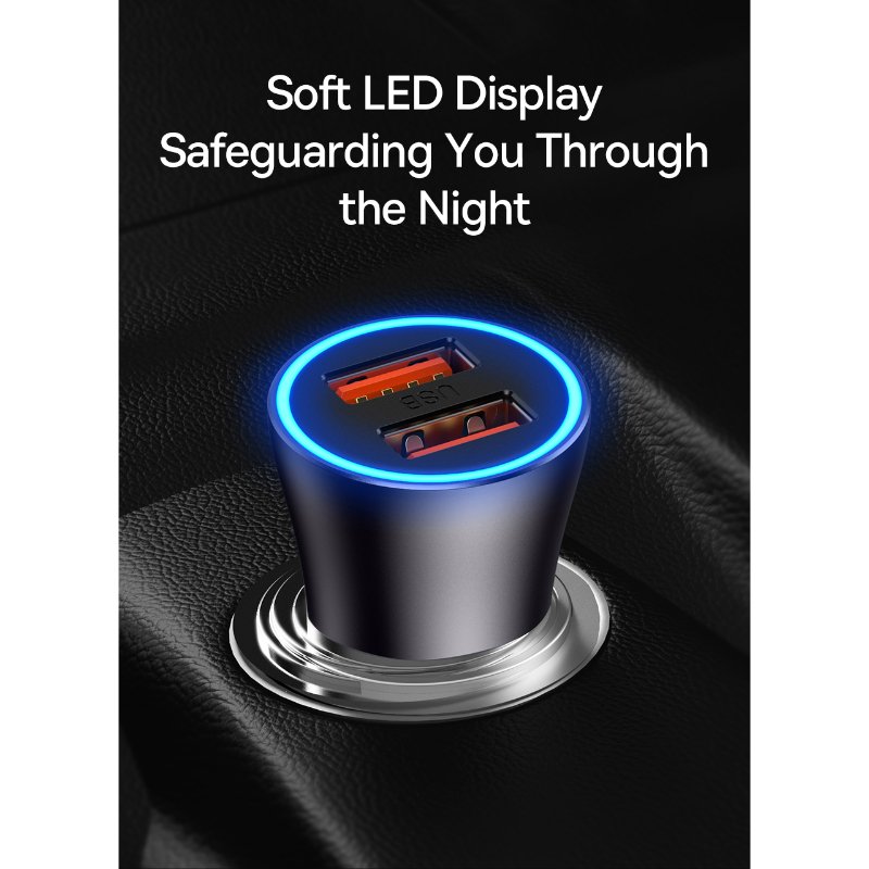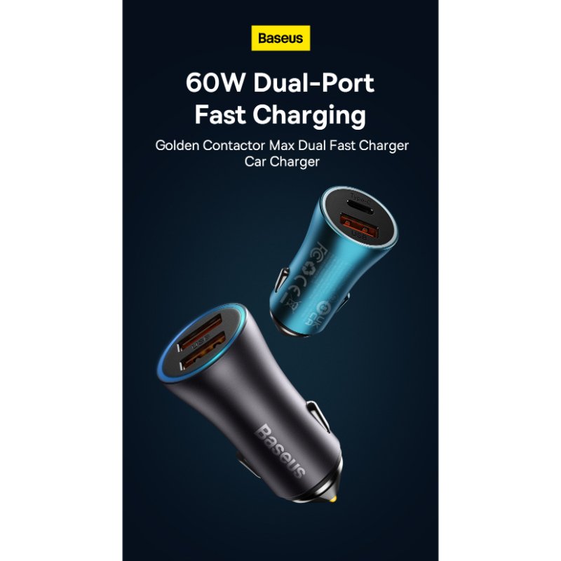 Baseus Golden Contactor Max Dual-Port High-Speed Fast Charger for Cars 60W USB + Type-C Charging Power