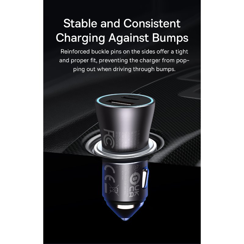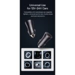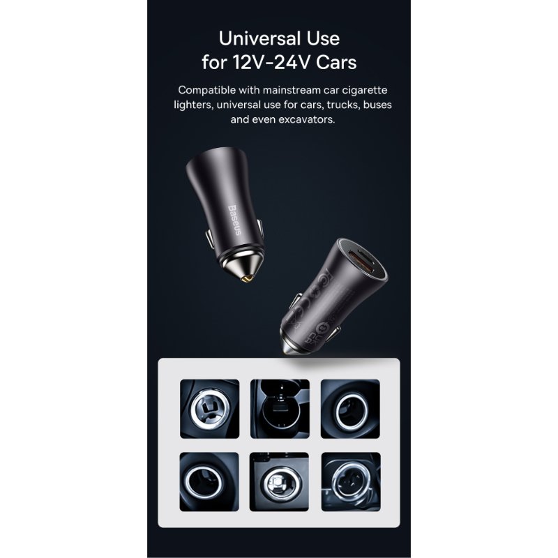 The Baseus Golden Contactor Max Dual Fast Charger Car Charger U+C 60W is a versatile charging solution that works with cars operating between 12V and 24V.