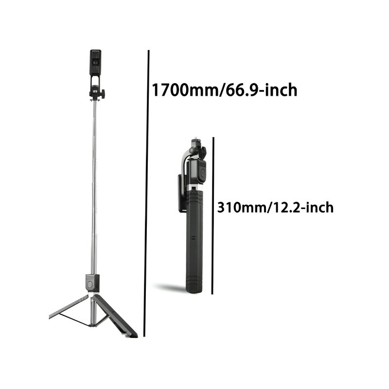 The BD-17 1700mm Selfie Stick & Tripod is a versatile tool designed for photographers, vloggers, and content creators seeking hands-free control over their devices. With a maximum height of 1700mm, this tripod offers flexibility for various shooting angles, allowing users to capture everything from close-up portraits to ultra-wide landscape shots. Made with durable stainless steel and ABS materials, the BD-17 provides reliable stability on different surfaces, thanks to its enlarged tripod base that ensures a secure center of gravity, even on uneven ground.