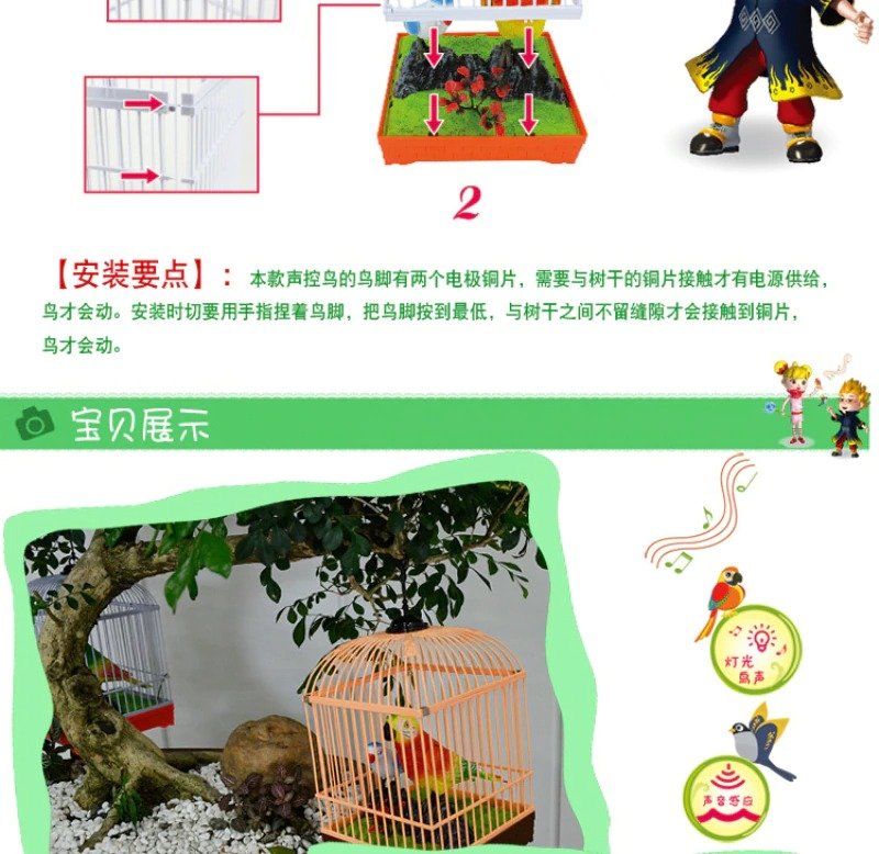 AUDIO-ACTIVE BIRD produces simulated sounds and movements.