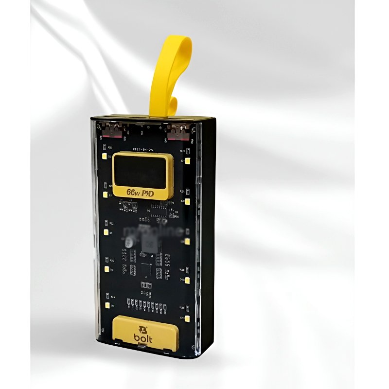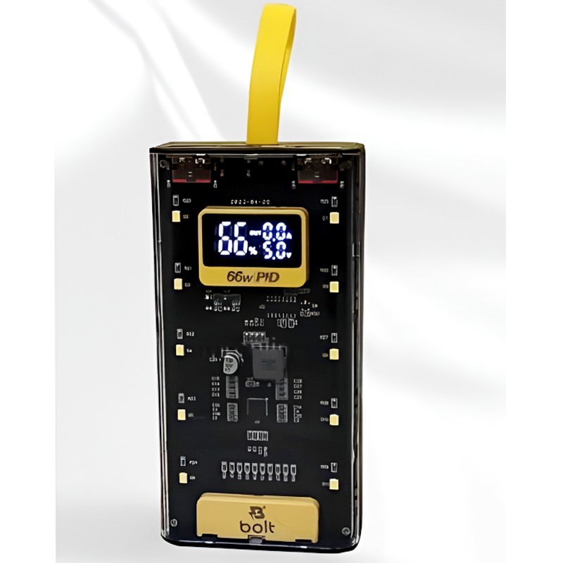 Stay charged wherever life takes you with the Bolt B105 20000mAh 66W PD Power Bank—a performance, portability, and protection powerhouse. Designed with a sleek transparent casing and vibrant yellow accents, this high-capacity power bank doesn’t just look futuristic, it delivers serious charging speed too.