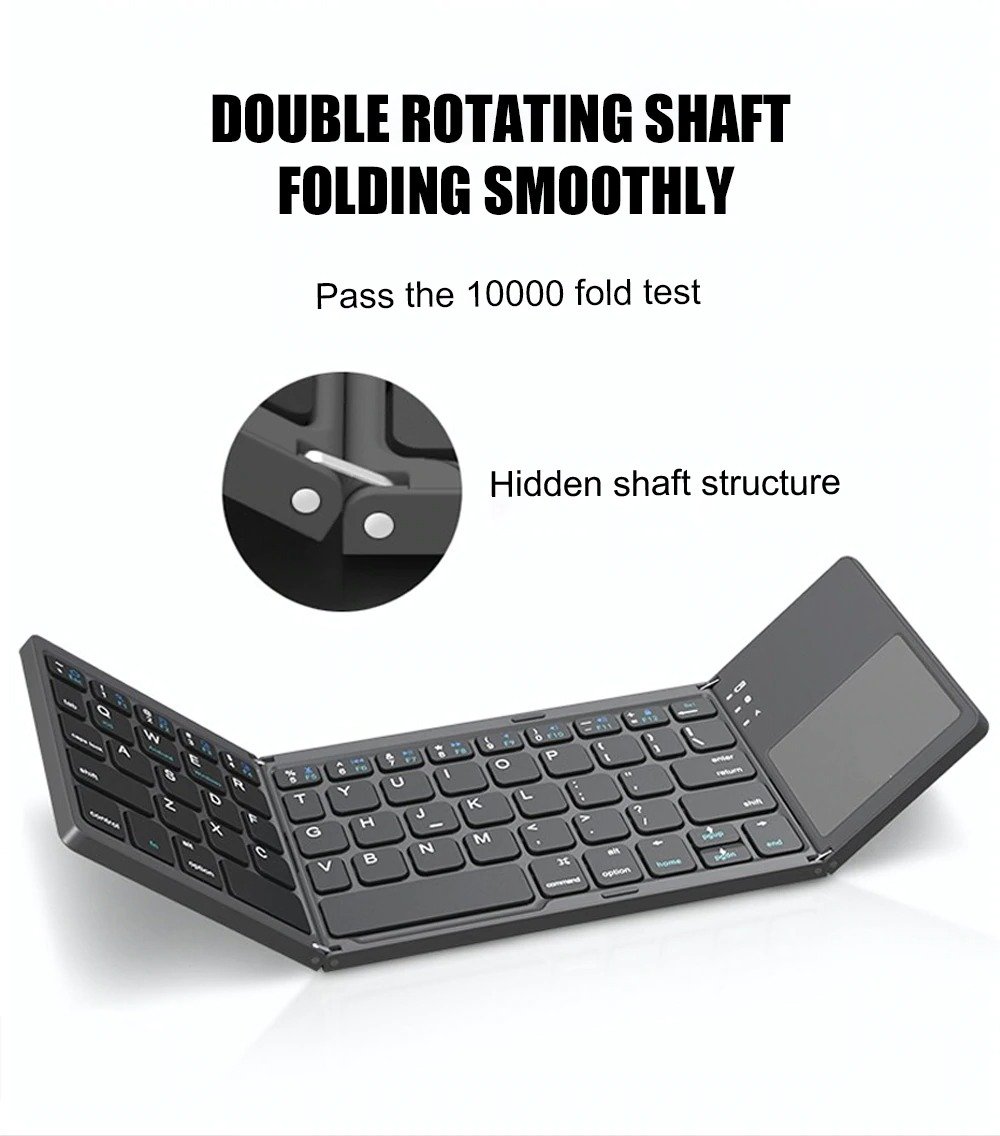 [Rechargeable Battery] – Users enjoy up to 48 hours of write time on a single charge. The wireless foldable Bluetooth keyboard has a rechargeable lithium-ion battery. The standby time is up to 560 hours.