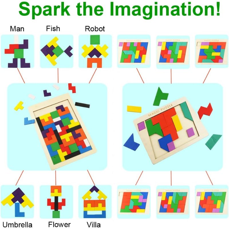 The simple design and bright colours: it feels great to challenge kids with this tangram jigsaw puzzle