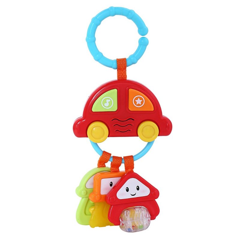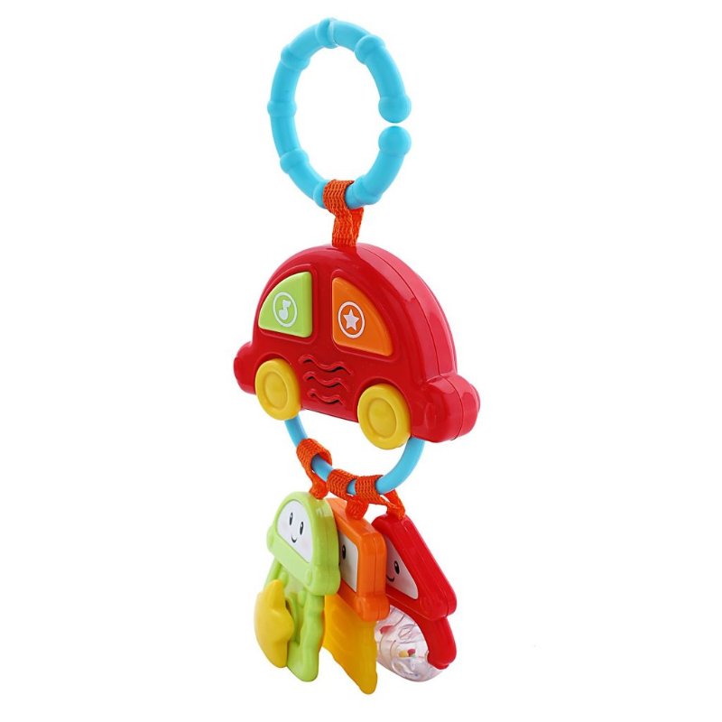 The keychain with Rattle Sounds WinFun is colored, can be used in the crib, the stroller or anywhere.