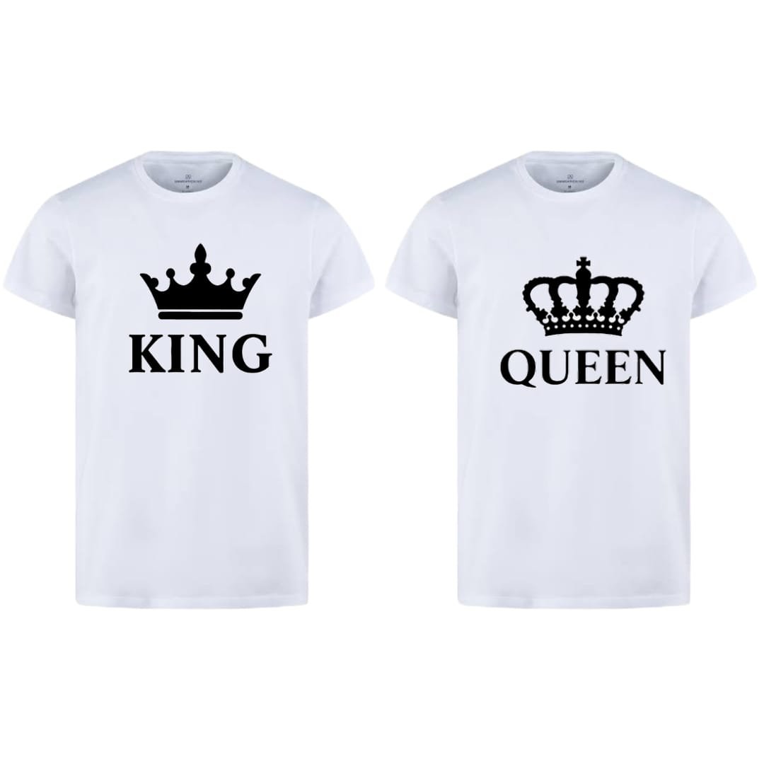 Combo of King & Queen Style White T-Shirts – Perfect Couple Goals!
