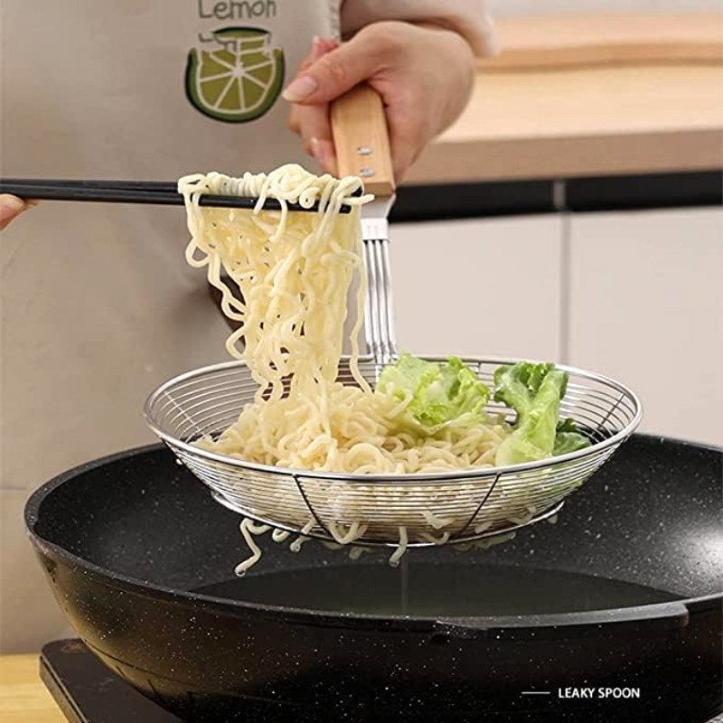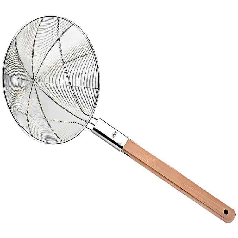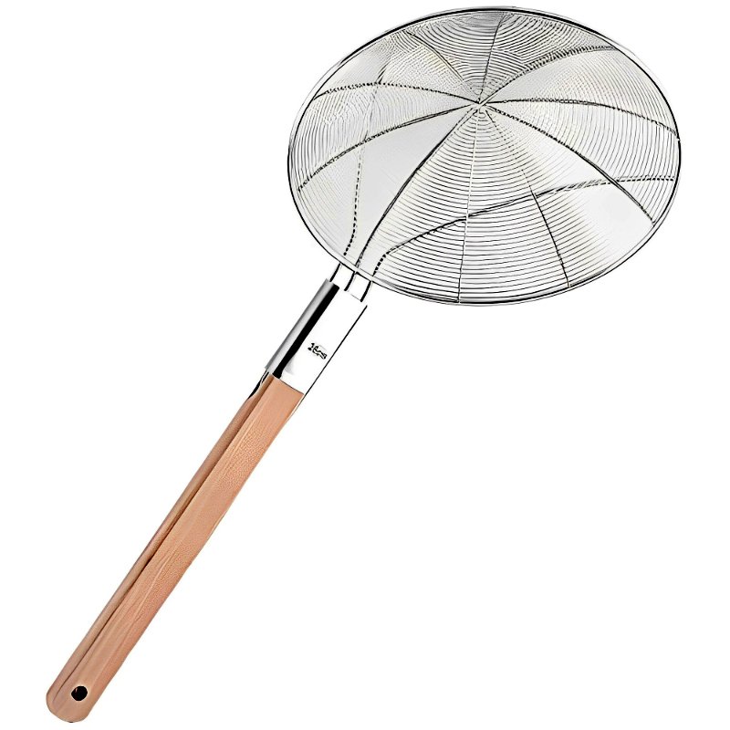 The Eco-Friendly Wooden Handle Stainless Steel Frying Oil Strainer is a practical and sustainable kitchen tool.