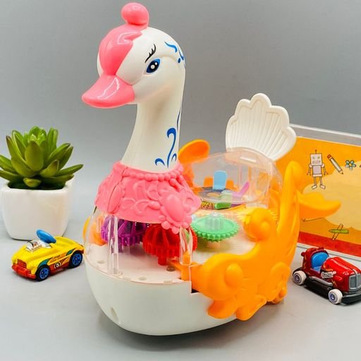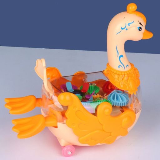 Gear Swan Duck toy with transparent shell and gear structure.