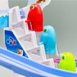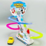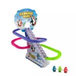 ASTM Tested and Certified.Visual perception exercises to help color recognition. Helps younger children develop hand-eyecoordination.Great for autistic children. Makes a great gift for children Ages 3 and Up.This is a super Penguin Run Game bound to keep the young ones entertained – Watch as the cutePenguins race up the musical moving stairs and slide down the track to start all over again. Thetrack has lights around to enhance the fun.This wonderful game is loads of fun for all children to enjoy, and even parents too. Simply slotthe track together following the number order and the diagram on the box.
