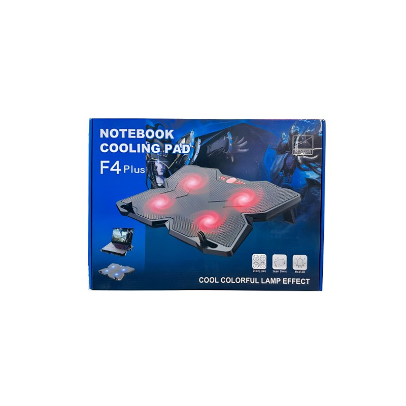 Introducing the F4 Plus Notebook Cooling Pad, a must-have for gamers and high-performance users seeking optimal laptop cooling. With dimensions of 40.5 x 28.5 x 3 cm, it accommodates laptops up to 15.6 inches, ensuring efficient cooling with its four silent 120 mm fans. The micro-perforated coating enhances airflow, safeguarding your laptop’s performance and durability.