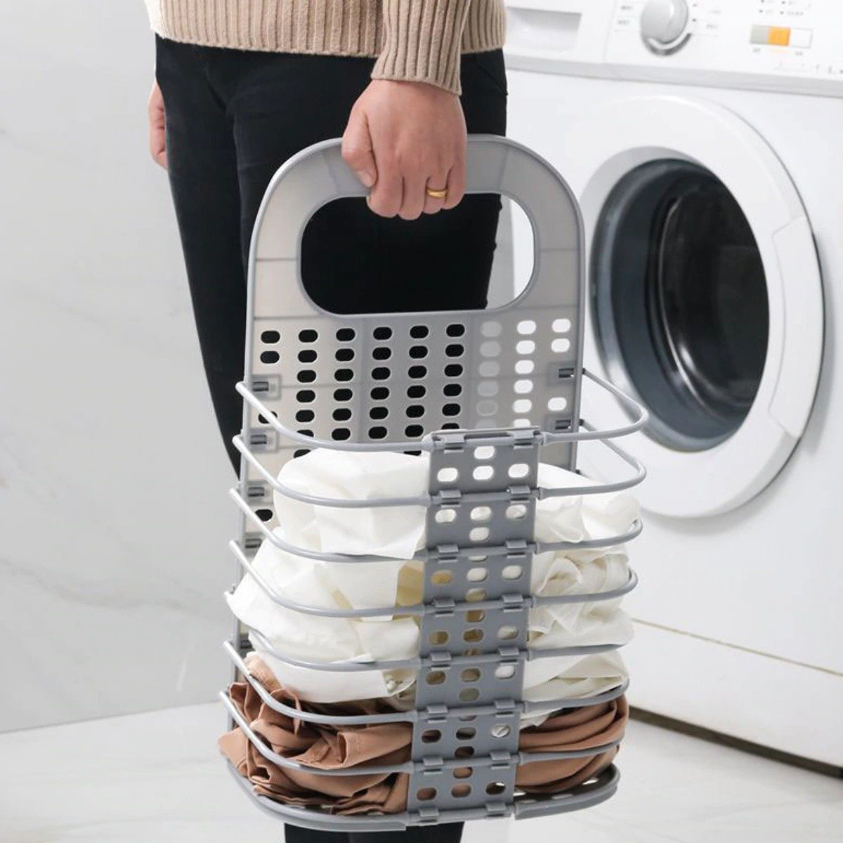 The carrying handle makes it convenient when moving from a laundry basket