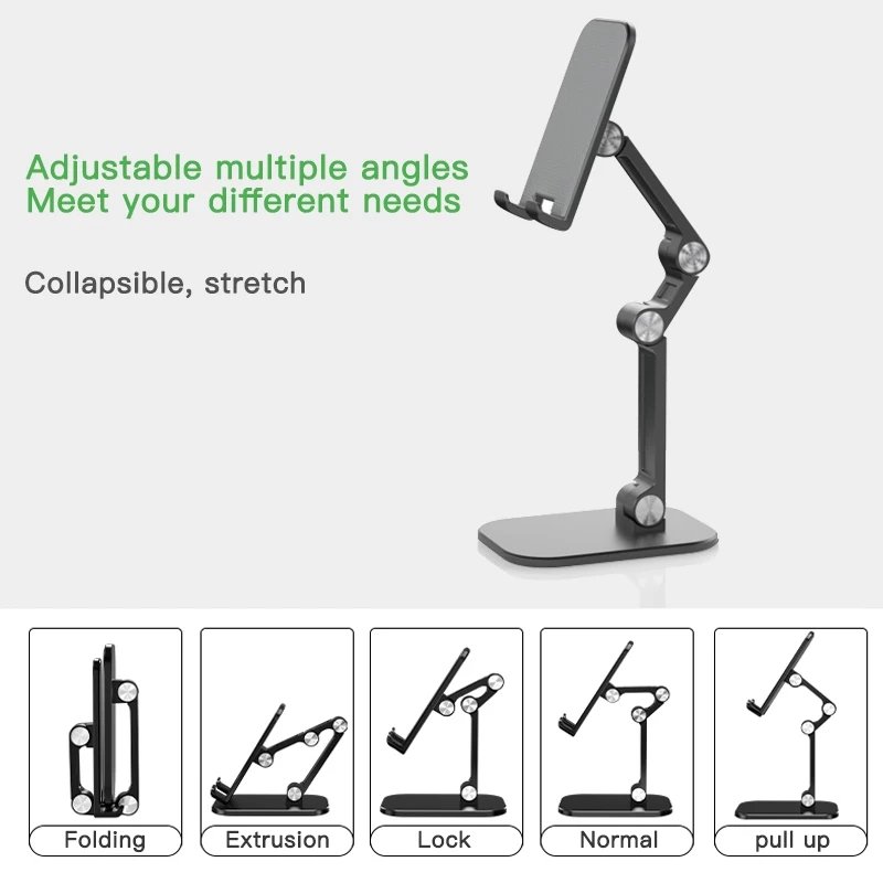 – Foldable Phone Holder features high-grade materials, adjustable angles and heights, and a simple and sophisticated look.