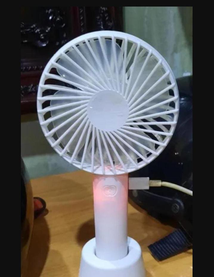 - Introducing our compact and adorable handheld fan, designed to bring you comfort wherever you go. With its round silicone bottom, it effortlessly fits in your hand or can be placed on any desktop surface.