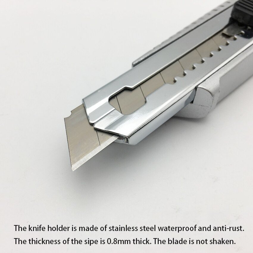 Aluminium handle, blade frame with black slider come with 18mm snap-off blade.