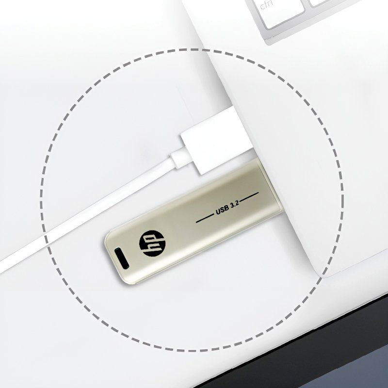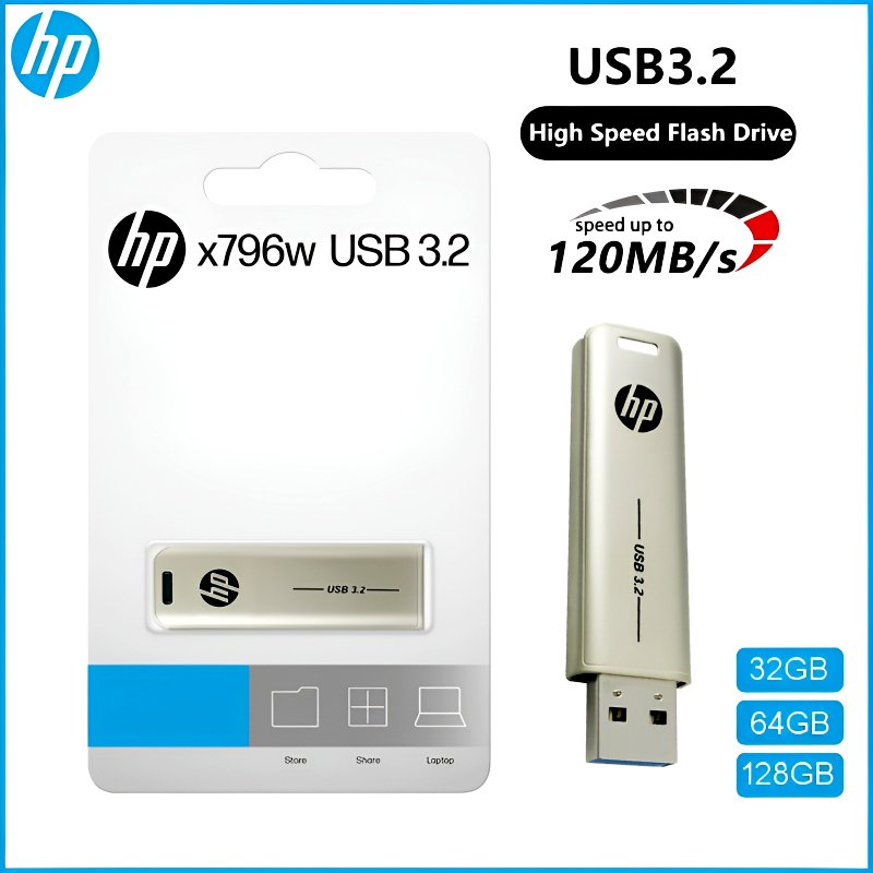 The HP x796w USB 3.2 Flash Drive combines sleek style, durability, and convenience in a metal casing. It offers a reliable mobile storage solution for files, photos, music, and more.