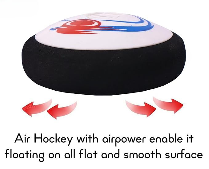 - Ice Hockey Air Power (Battery Operated) for Kids with Air Cushion. A football puck that floats on an airbed and has soft protective foam edges. It may be used on any smooth surface. Ideal for indoor gaming. Do not mix old and new batteries(Use only 1.5V AAA batteries)