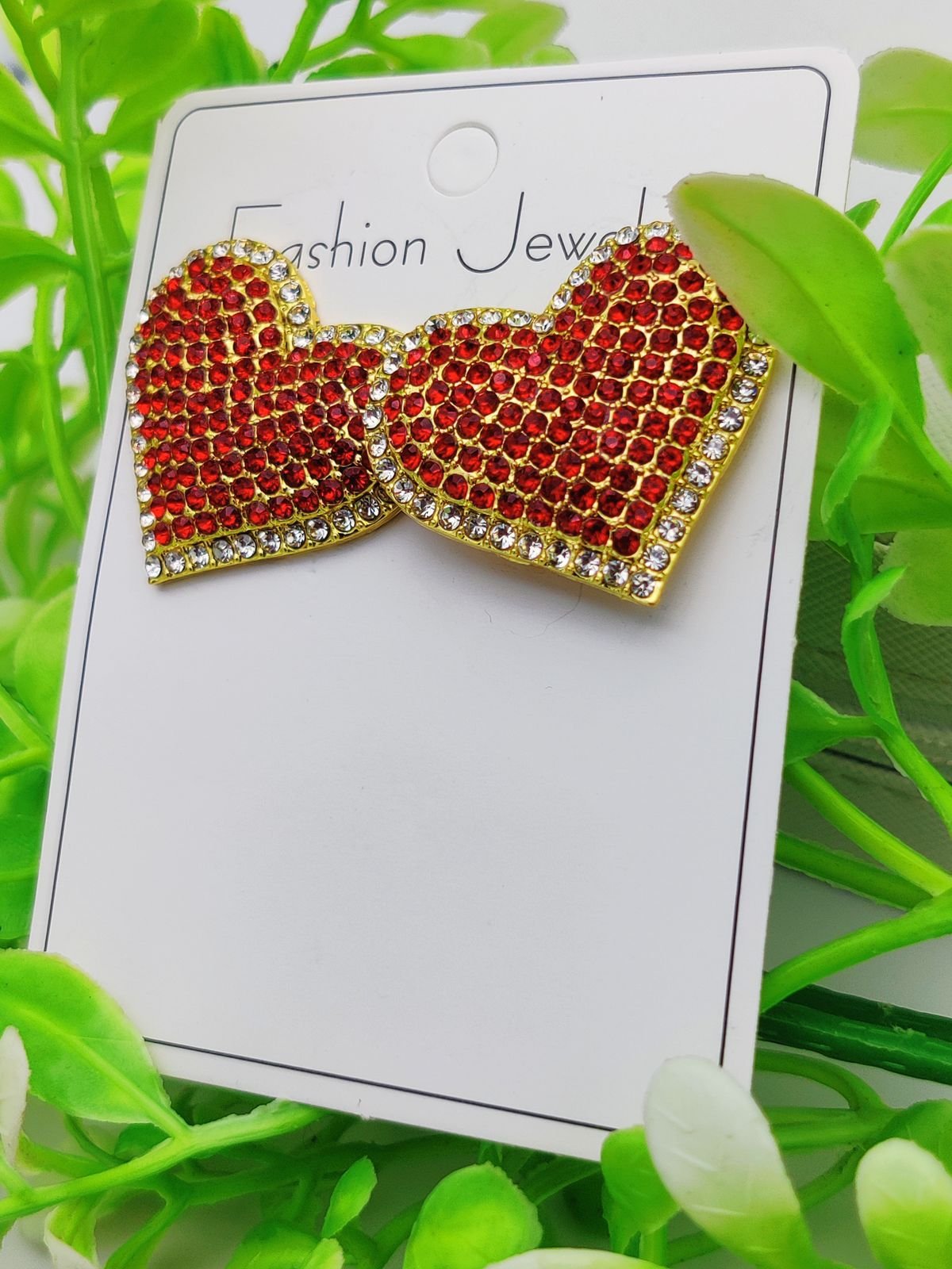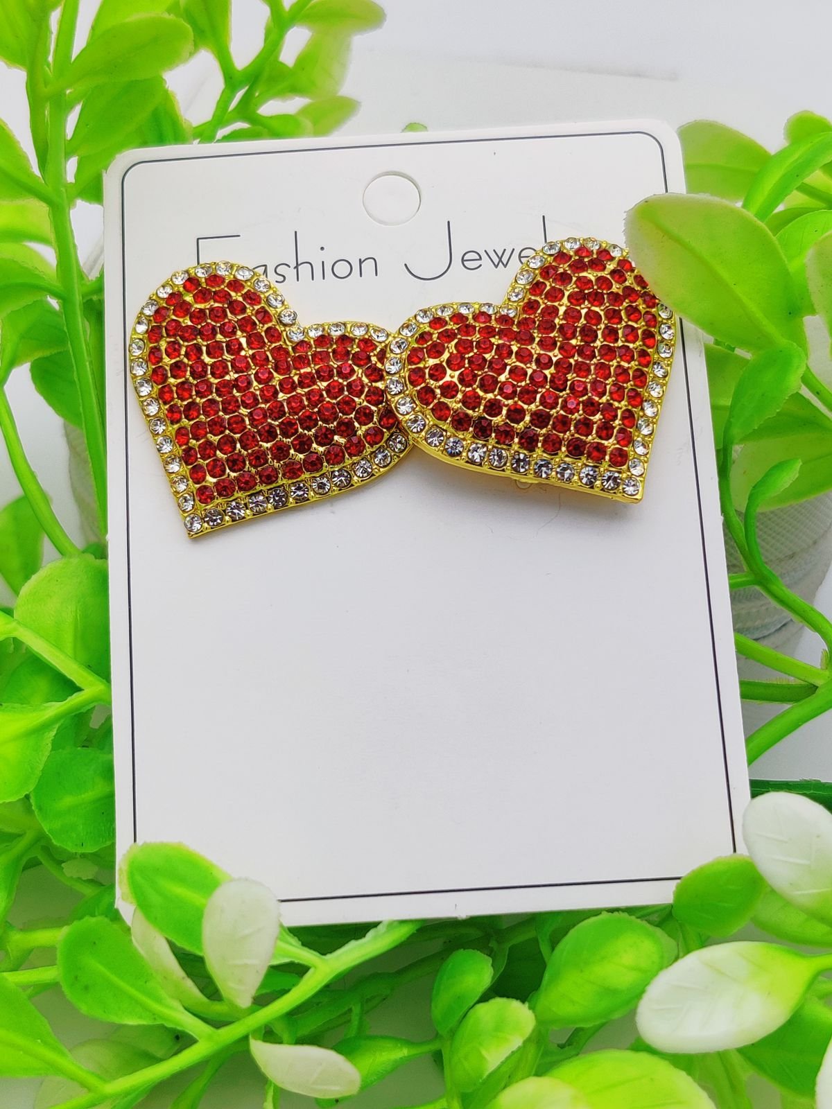 Turn heads with these captivating red heart earrings, designed to dazzle with intricate detailing and unmatched brilliance. Perfect for those who love making a bold fashion statement, these earrings blend vibrant red rhinestones with a gold base for an irresistible charm. Whether you’re dressing up for a special occasion or adding flair to your everyday look, these earrings promise to amplify your style.