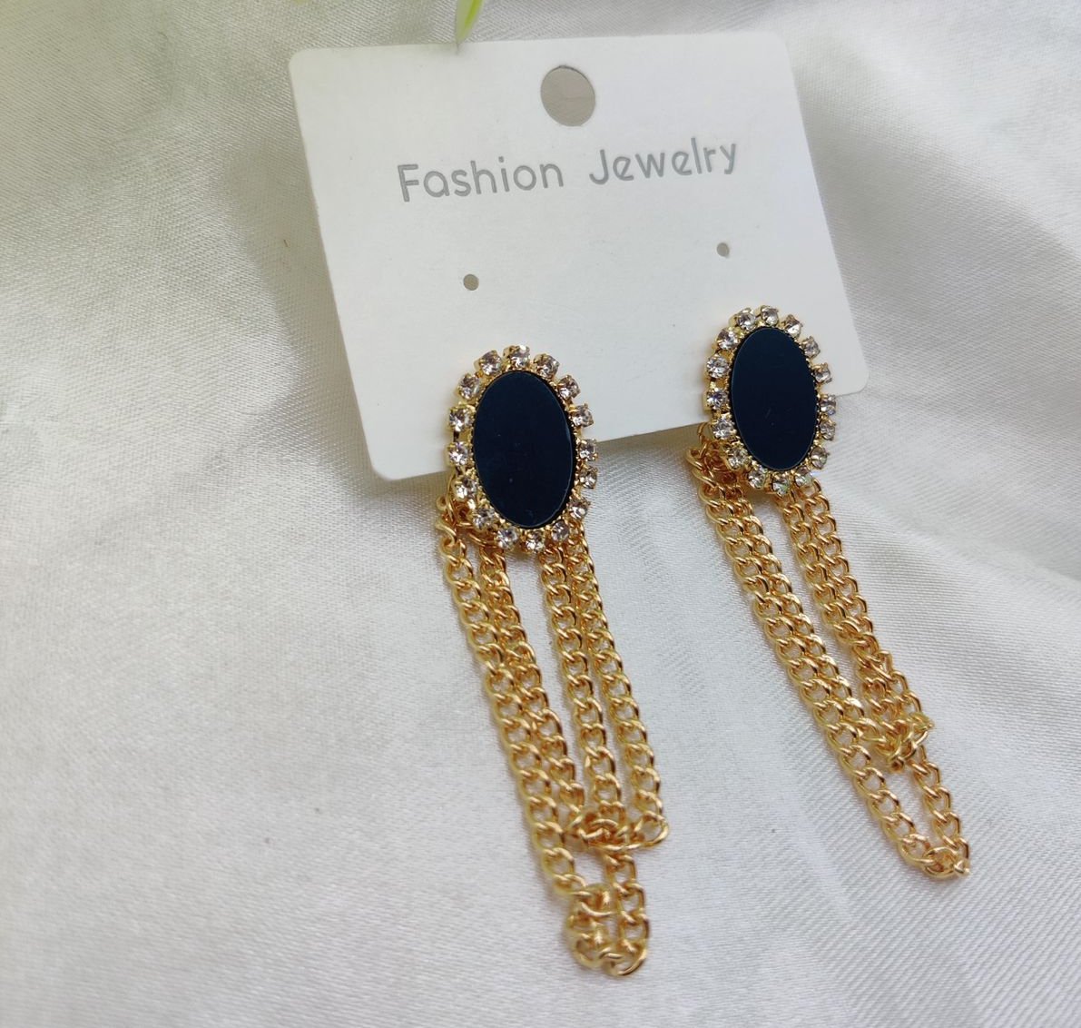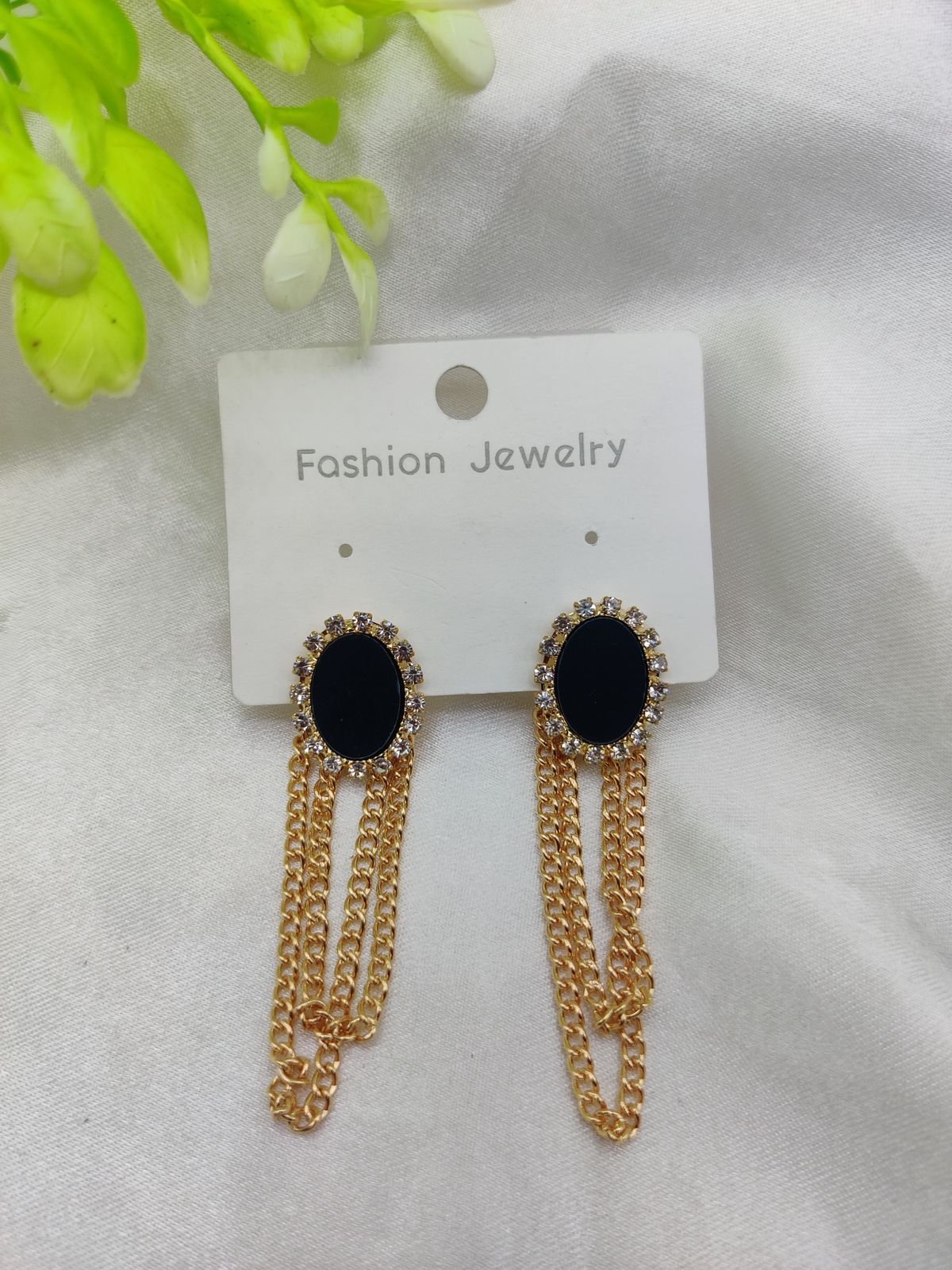 Home » Shop » Imported Elegant Black & Gold Oval Chain Earrings – Luxury Redefined | Best Quality Earring For Girls & Women | Artificial Earrings