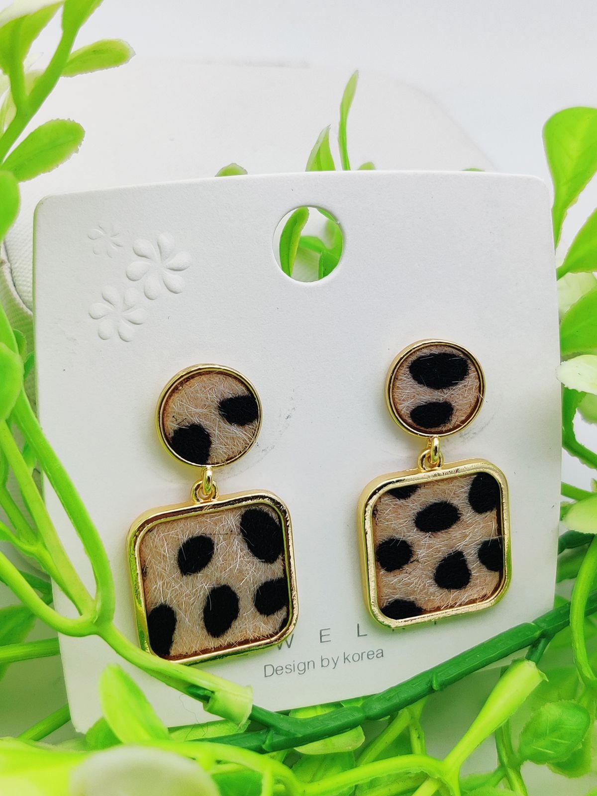 Description: Add a bold and chic touch to your outfit with these stunning leopard print drop earrings! Featuring a unique combination of animal print fabric and golden accents, these earrings perfectly blend wild charm with sophisticated elegance. Ideal for casual outings, parties, or gifting, these lightweight earrings are sure to become your go-to accessory. 🖤✨ Elevate your style effortlessly!