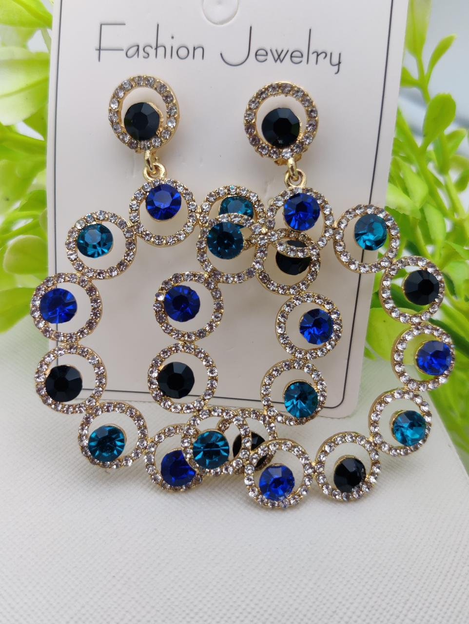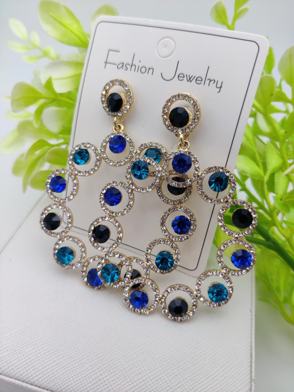 Add a splash of color to your jewelry collection with these stunning multicolored circle dangle earrings. Featuring a unique design with vibrant blue, black, and teal stones encased in shimmering golden rings, these earrings are the epitome of elegance and charm. Whether you’re dressing up for a formal event or adding flair to a casual outfit, these earrings make the perfect statement piece.