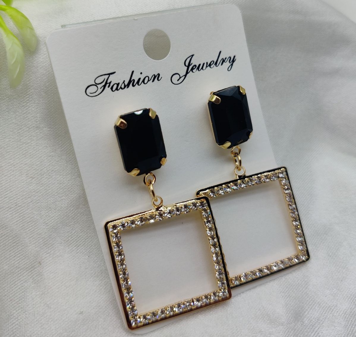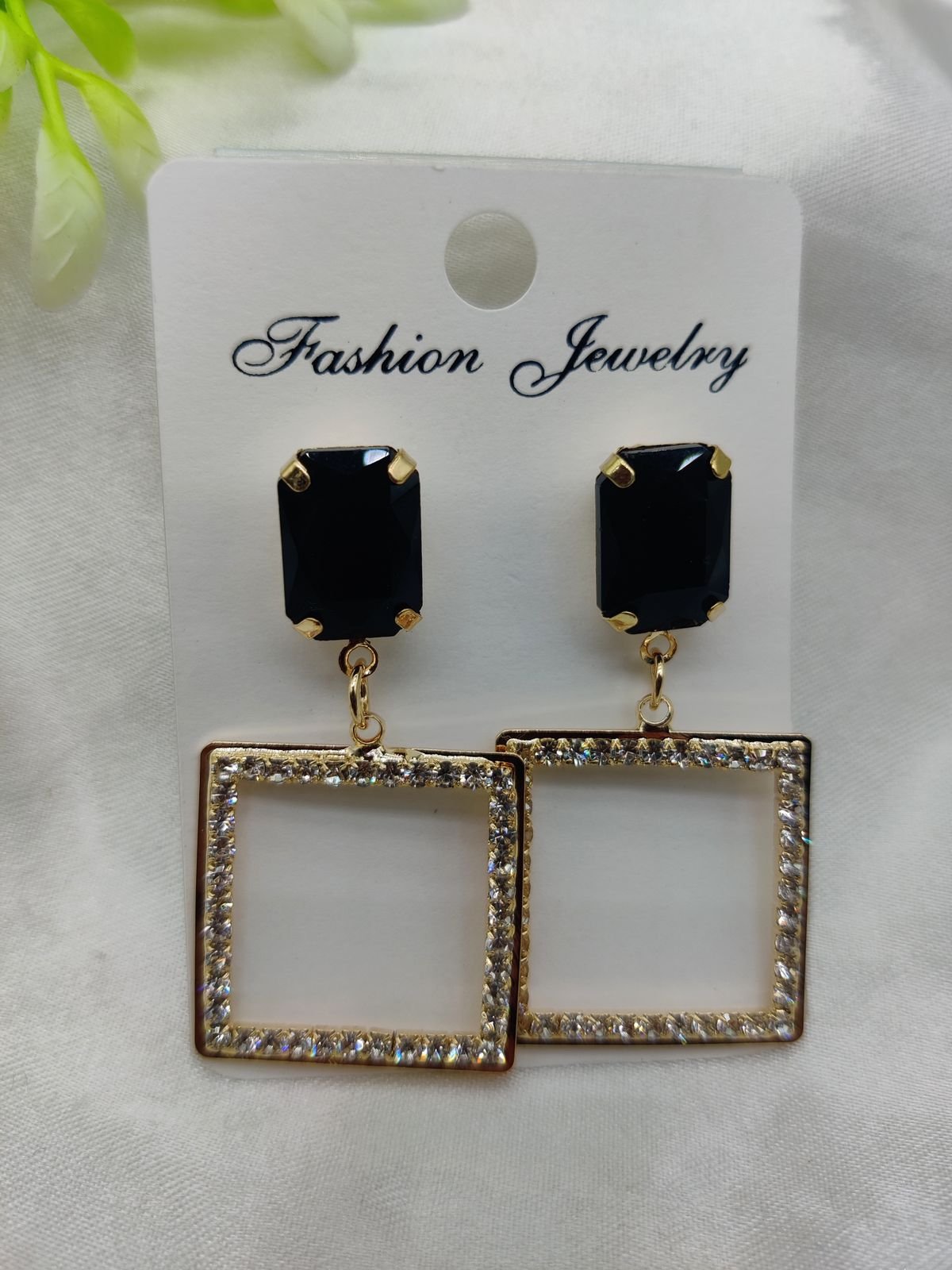 Imported Elegant Square Dangle Earrings with Luxe Black Crystal Top | Best Quality Artificial Earrings