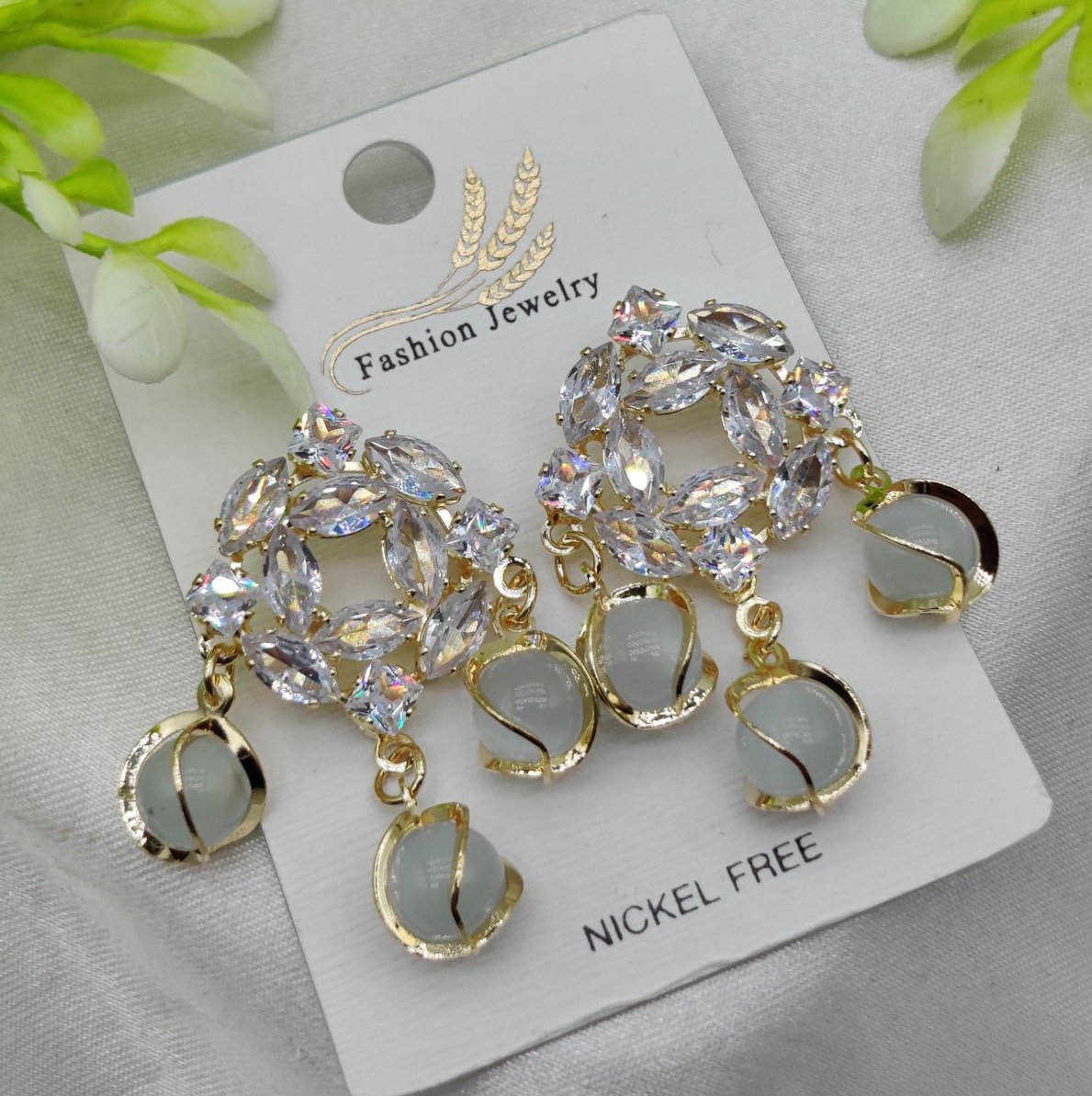 Imported Exquisite Crystal Halo Earrings with Chic Gemstone Dangles | Best Quality Artificial Earrings For Girls & Women