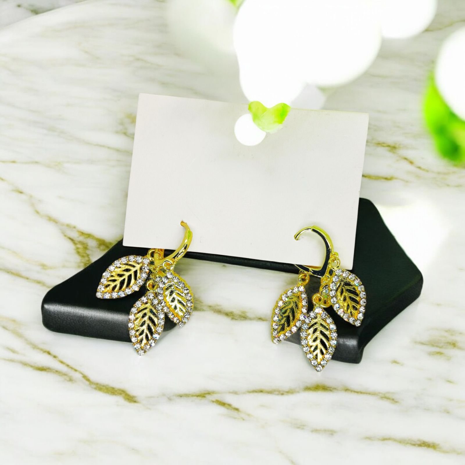 - Add a sparkle of nature to your style with these stunning triple leaf crystal earrings