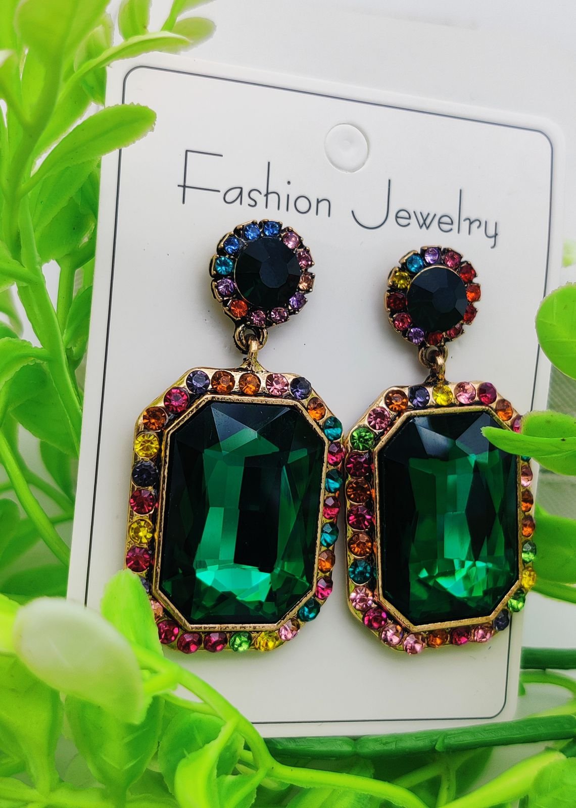 Description: These breathtaking emerald green gemstone earrings are a masterpiece of elegance and sparkle! 🌿✨ Surrounded by a vibrant rainbow crystal halo, these earrings are designed to add a pop of color and luxury to any outfit. Perfect for weddings, parties, or glamorous evenings, these statement earrings will make heads turn wherever you go. Lightweight, comfortable, and undeniably chic – your new go-to accessory! 💚👑