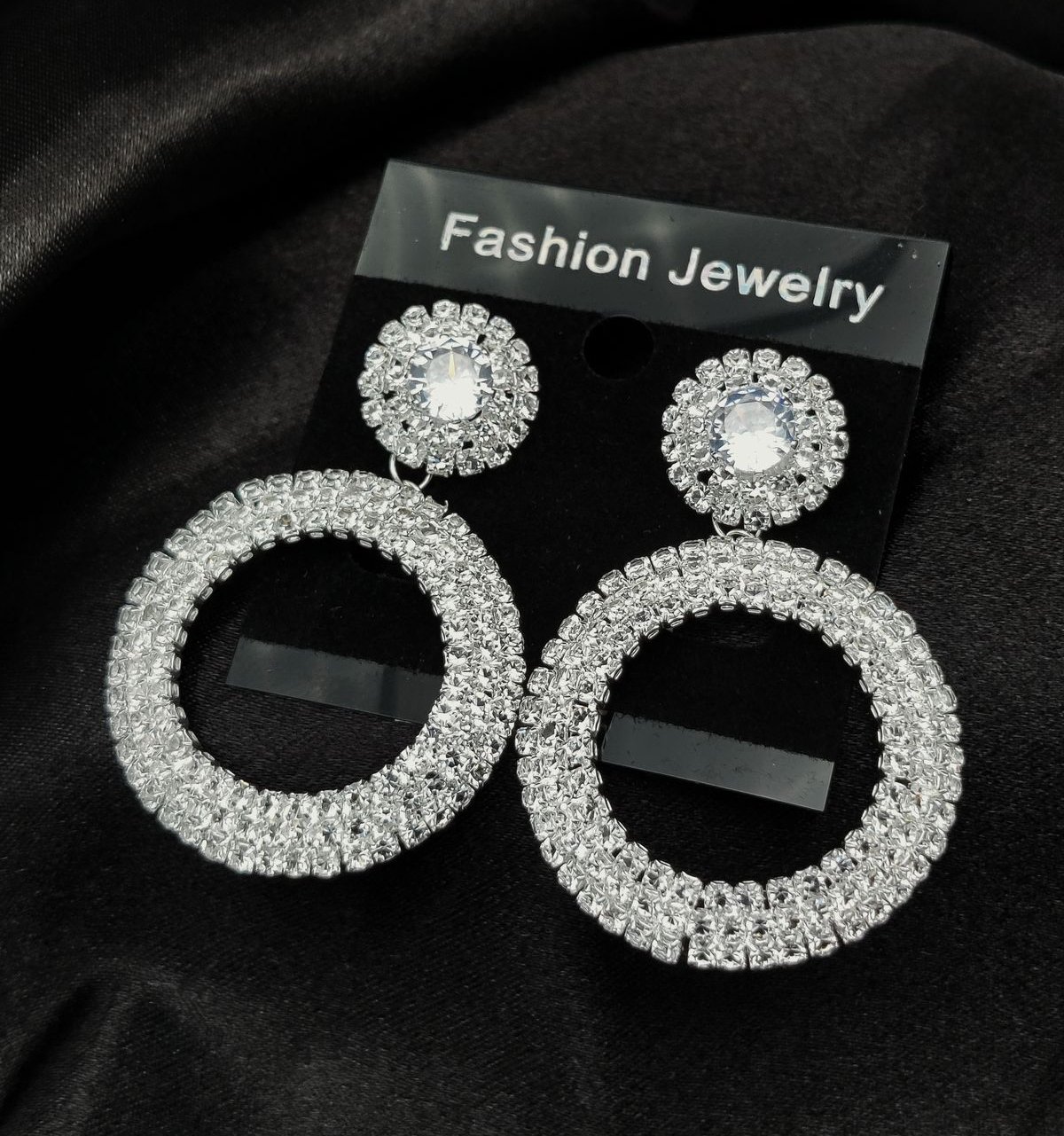 Imported Stunning Rhinestone Circle Drop Earrings – Tarnish-Free Elegance