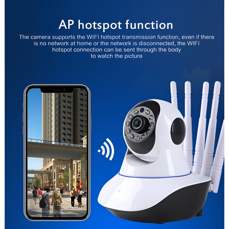 Equipped with 5 antennas for stable and clear signal transmission, this camera ensures an ultra-fast WiFi connection, allowing for seamless remote access and real-time monitoring without wires.