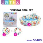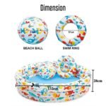 inflatable 52″ x 11″ (1.32m x 28cm) 3 ring pool with matching 20″ (51cm) beach ball and 20″ (51cm) swing ring.